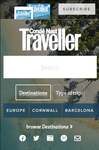 CNTraveller’s whole site wasn’t mobile friendly so we were approached to completely re-design the site. This is the best project I’ve worked on as I was given the freedom to role with it, with an extended budget and timeline. We created a destination search on the homepage for users who knew exactly what they were…
